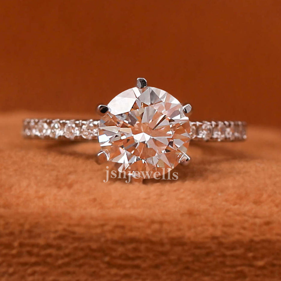 Round Cut Lab Grown Diamond Pave Setting Engagement Ring