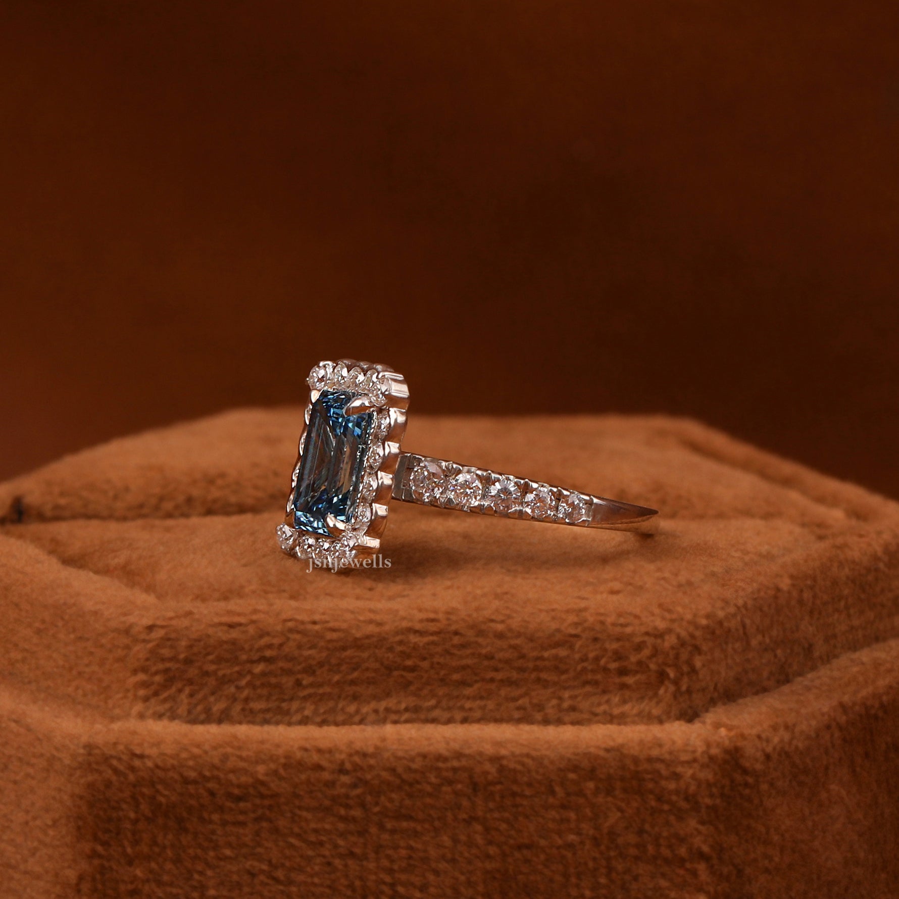 ✦ JSN Jewells – This Exquisite Ring Features a Brilliant 1.50 CT Blue Emerald Cut Lab-Grown Diamond.