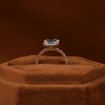 Blue Emerald Cut Lab Grown Diamond Halo with Pave Engagement Ring
