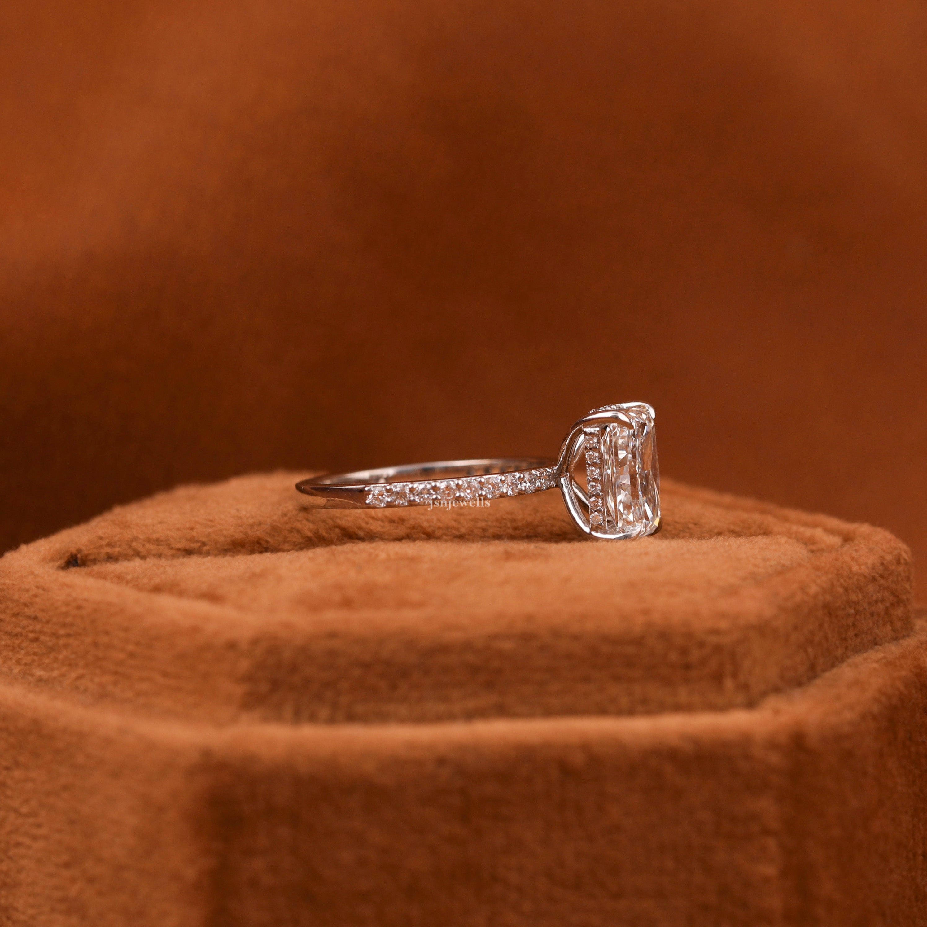 ✦ JSN Jewells – This Exquisite Ring Features a Brilliant 1.50 CT Emerald Cut Lab-Grown Diamond.
